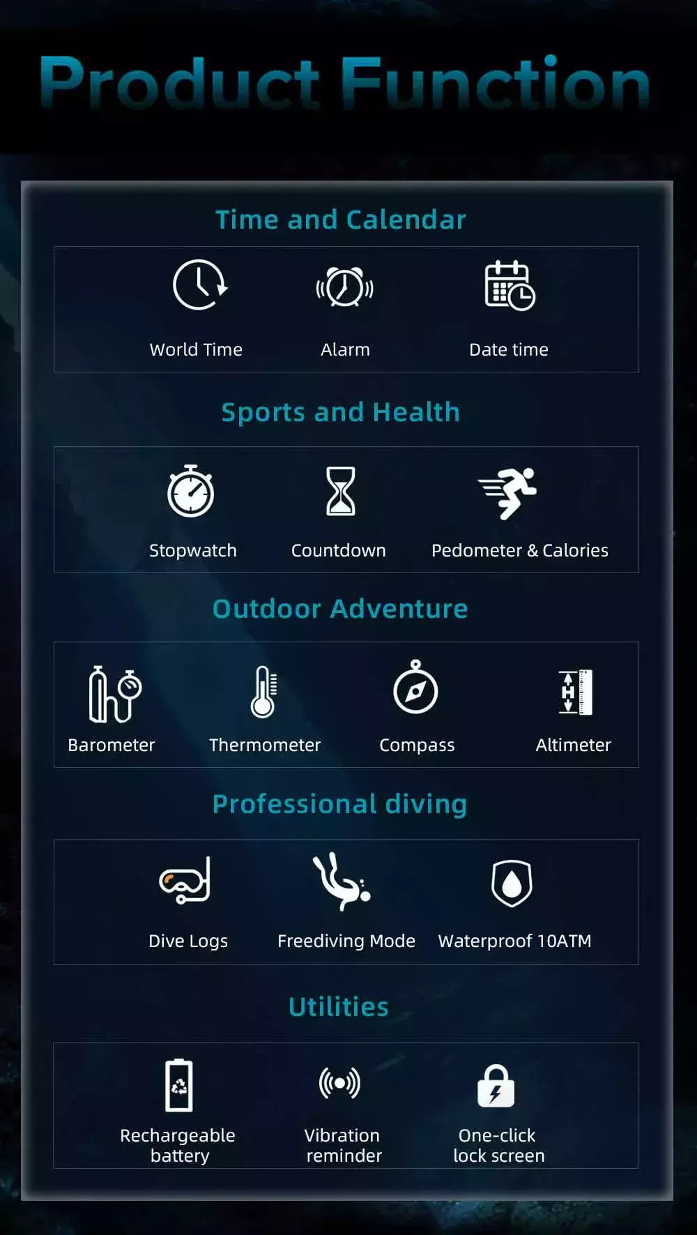 Nome | Rastreador de Profundidade Modo Apneia Altímetro e Previsão do Tempo Aventuras Extremas Relógio de Mergulho APACHE-D |
